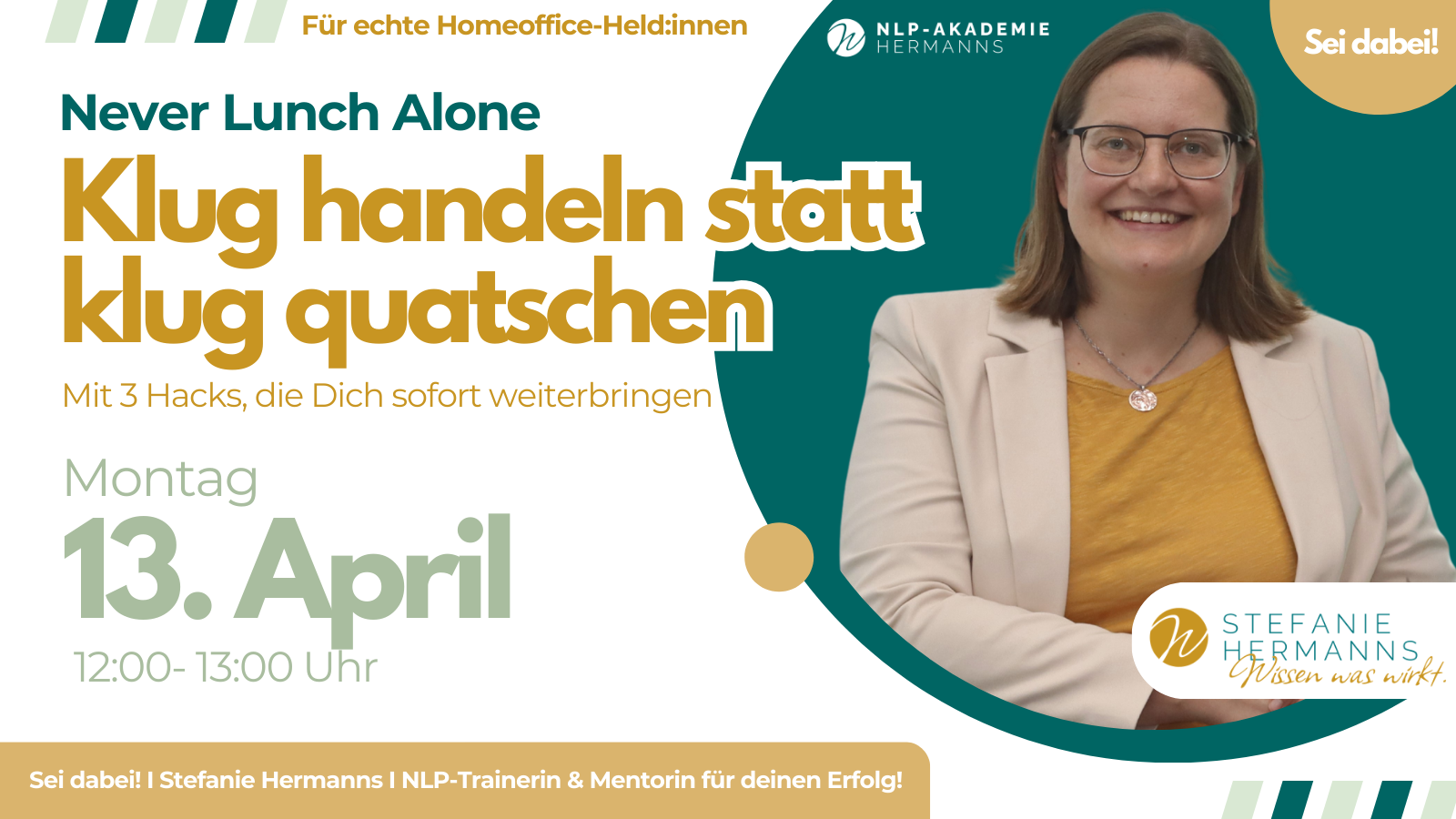 Speziell für alle Homeoffice-Held:innen, die zwischen Videocalls echte Impulse suchen: Schluss mit dem einsamen Mittagessen! Erfahre von der NLP-Akademie Hermanns, wie Kommunikation wirklich wirkt.